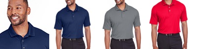 5.64 oz., 85% polyester, 15% cotton; subtle heather texture; moisture-wicking; mechanical stretch; ultrasoft, cottony feel with the performance of polyester; 3 button placket; silcone Puma Cat logo on left sleeve;