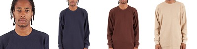 Heavyweight waffle knit; 8.9 oz., 100% USA cotton, 18 singles; Heather Grey is 90% USA cotton/10% polyester; Charcoal Grey is 50% USA cotton/50% polyester; Shoulder-to-shoulder neck tape; 1" double-needle stitched bottom hem; 1" neck ribbing; Ribbed wrist cuffs; Forward-thrusted shoulder seam for comfortable neck fit; Woven neck and side-seam labels;