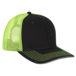 * Polyester/rayon * Trucker mesh * Melange heather fabric * Mid-profile * Pro-model * Slight curved visor * Black or Grey undervisor * Pro-stitched finish * Snapback adjustable