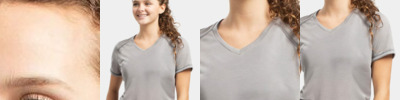 100% polyester heathered wicking knit * Wicks moisture * Ladies' fit * Tag-free label * V-neck collar * Set-in sleeves