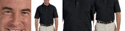 65/35 polyester/cotton piqué Reduced shrinkage Wrinkle-resistant Flat-knit collar and cuffs Set-in sleeves Side seams Three-button placket Hemmed bottom with side vents